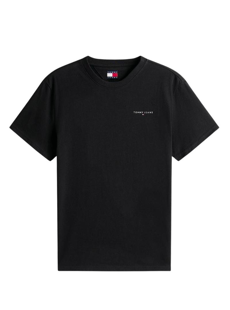 Camiseta Tommy Jeans. Modelo Linear Chest. Cor preta. Manga curta. Gola redonda. Logotipo da marca no peito. Corte slim.
