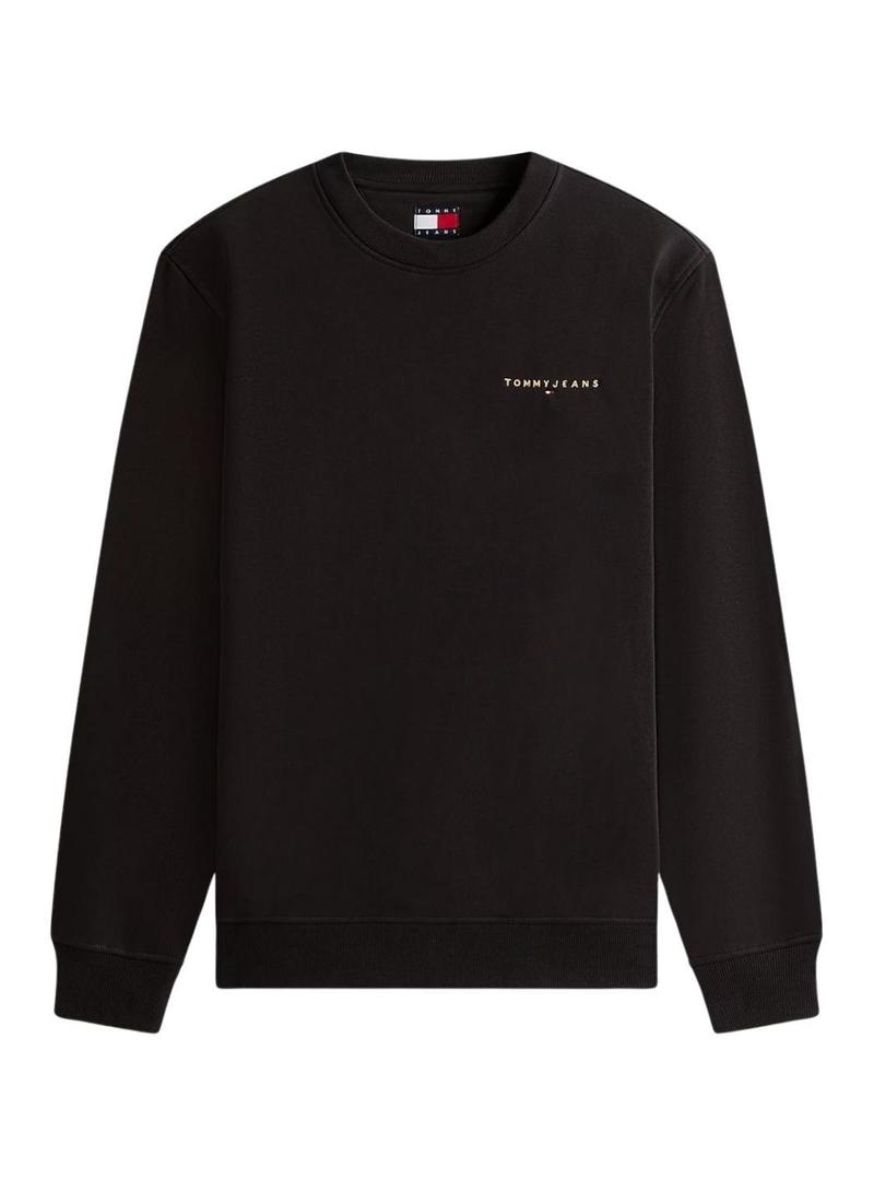 Moletom Tommy Jeans. Modelo Linear Chest. Cor preta. Gola redonda. Extremidades caneladas. Ajuste regular. Logotipo bordado no peito em contraste.