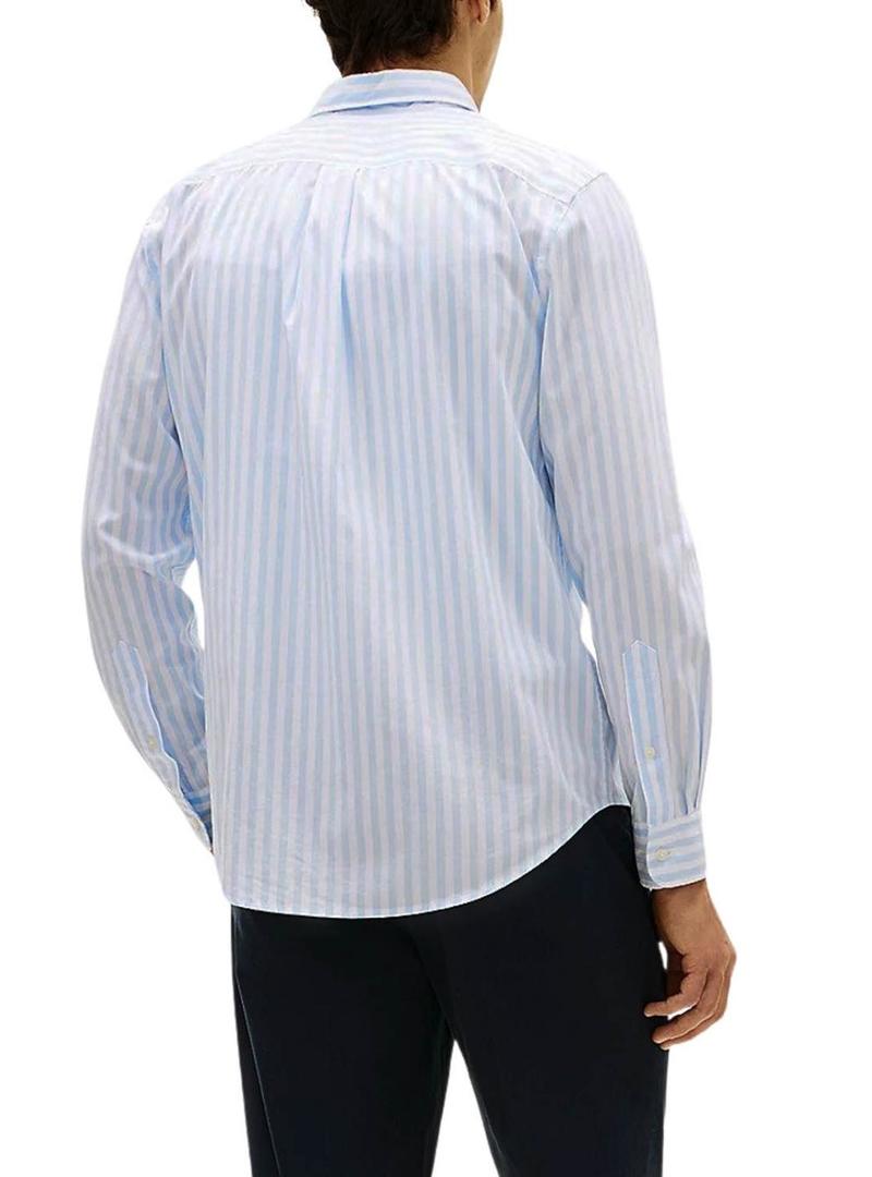 Camisa Tommy Hilfiger. Modelo com estampa listrada. Cor azul e branco. Colarinho com botão. Ajuste regular. Logotipo bordado no peito. Bainha arredondada.