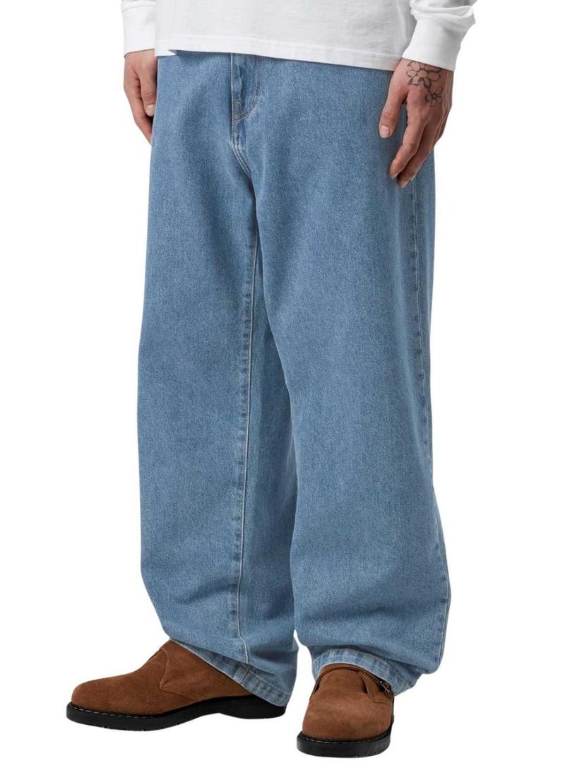 Calça jeans Carhartt. Modelo Landon. Denim médio. Fecho de botão e zíper. Cinco bolsos. Ajuste folgado. Perna larga. Remendo da marca na parte de trás.