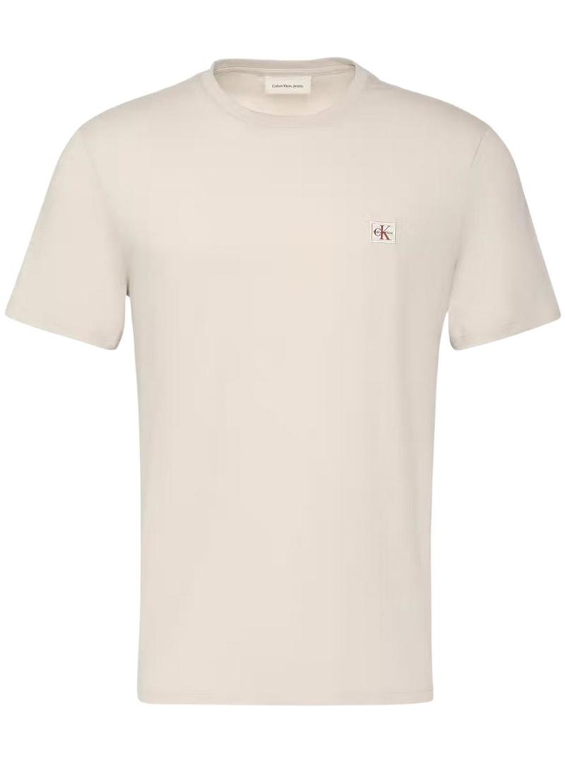 Camiseta Calvin Klein Jeans. Modelo clássico. Cor branco quebrado. Gola redonda. Manga curta. Ajuste regular. Etiqueta da marca bordada no peito.