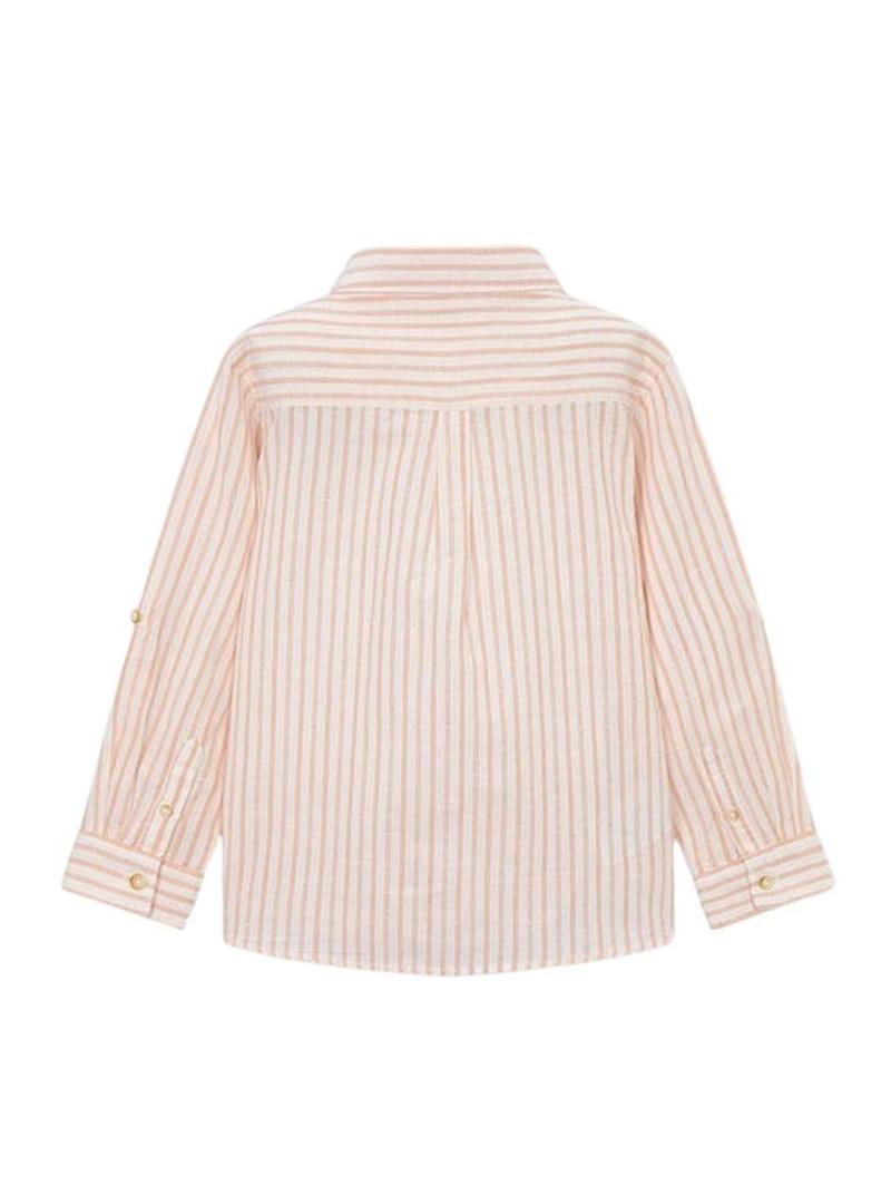 Camisa Mayoral linho listras branco e laranja para menino
