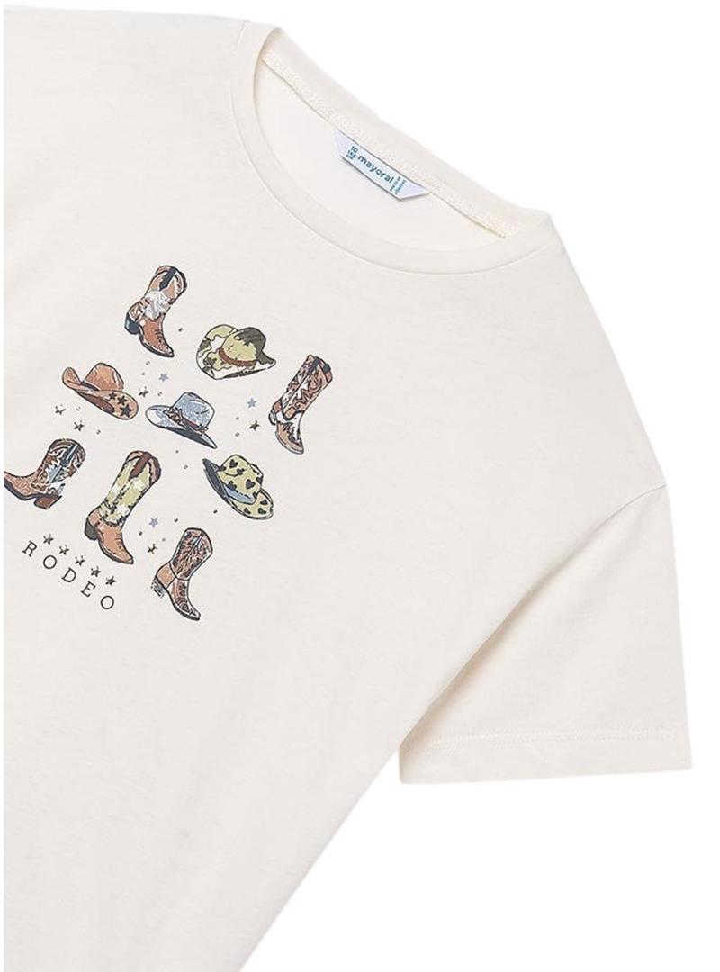 Camiseta Mayoral rodeo branca para menina.