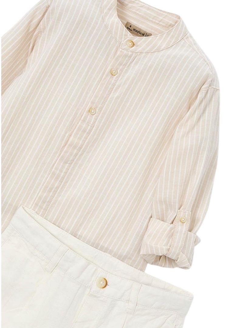 Conjunto camisa e bermuda Mayoral linho bege para menino.