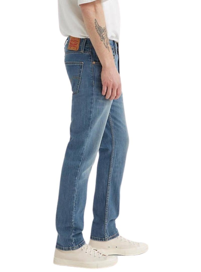Calça de ganga Levis. Modelo 502. Denim médio. Cinco bolsos. Patch da marca na cintura. Corte reto. Etiqueta emblemática no bolso traseiro. Denim sem elastano.