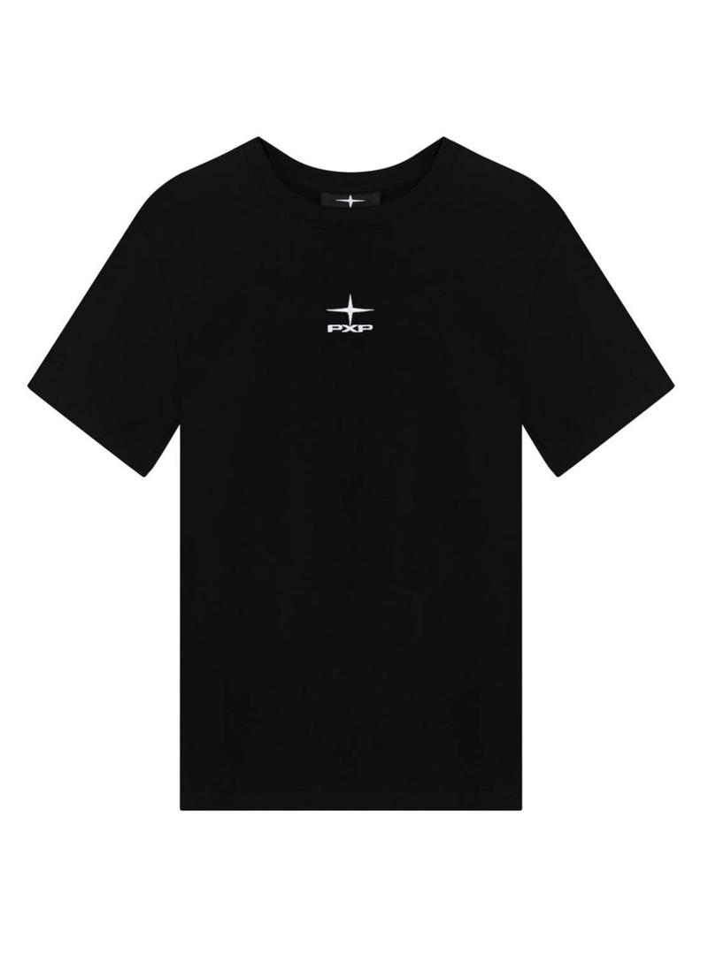 Camiseta Project x Paris. Modelo Change The Game. Cor preta. Gola redonda. Manga curta. Caimento folgado. Logotipo bordado no peito em branco. Mensagem estampada nas costas.