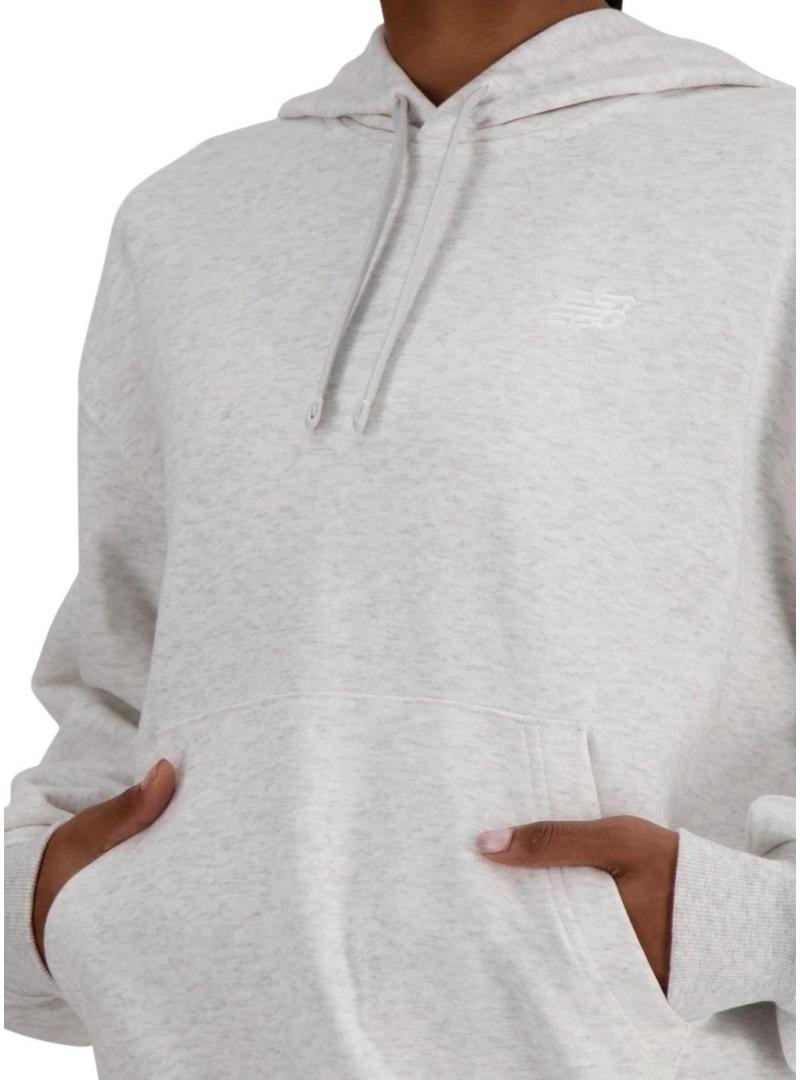 Moletom básico com capuz cinza da New Balance para mulher.