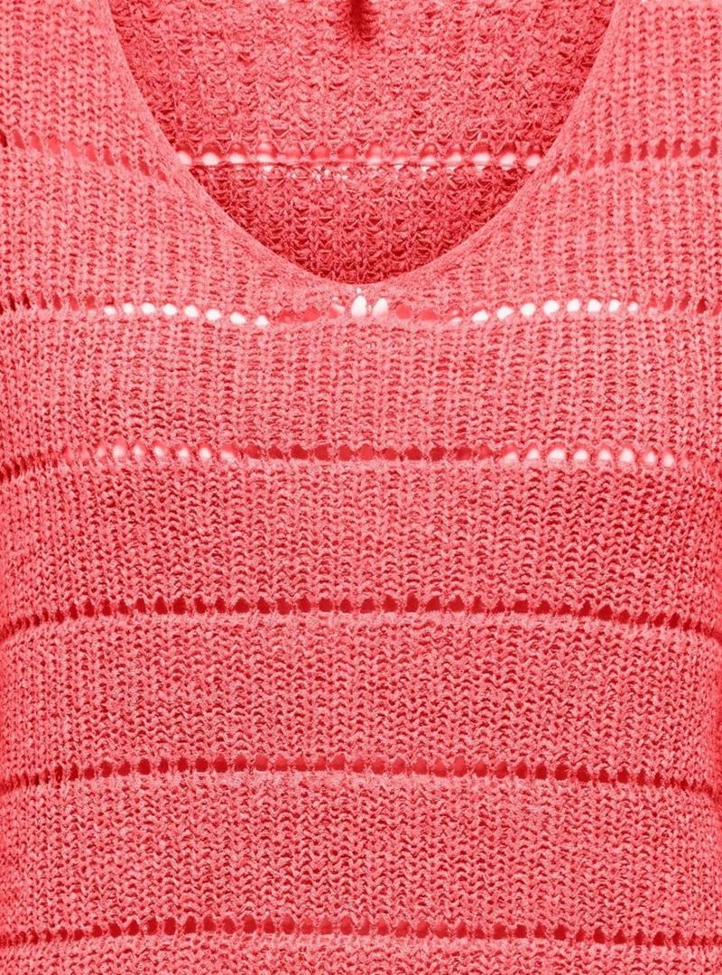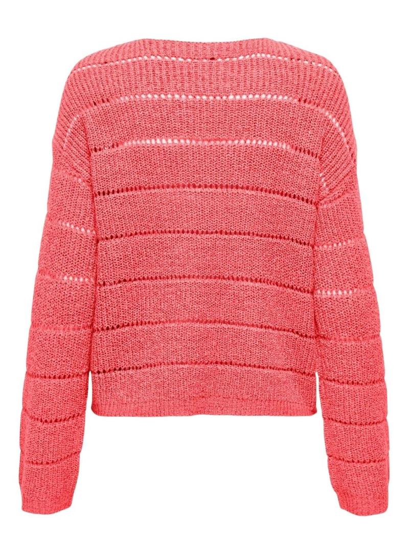 Camisola Only. Modelo Pamela. Cor coral. Ajuste folgado. Manga comprida. Decote em V. Ajuste regular. Calados formando riscas horizontais.