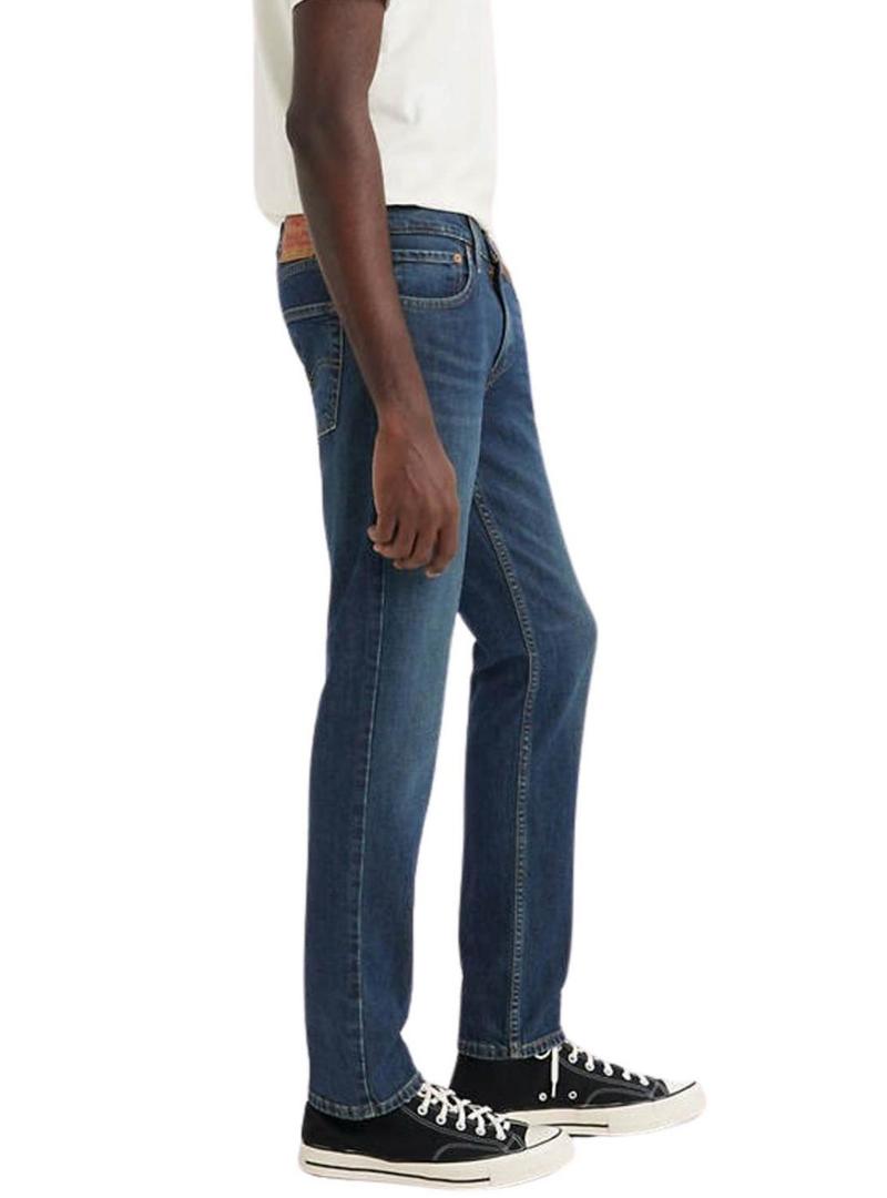 Calça jeans Levi's. Modelo 511. Corte slim. Fechamento com botão e zíper. Cintura média. Cinco bolsos. Patch da marca na cintura. Denim de cor média com efeito lavado. Etiqueta vermelha no bolso traseiro.