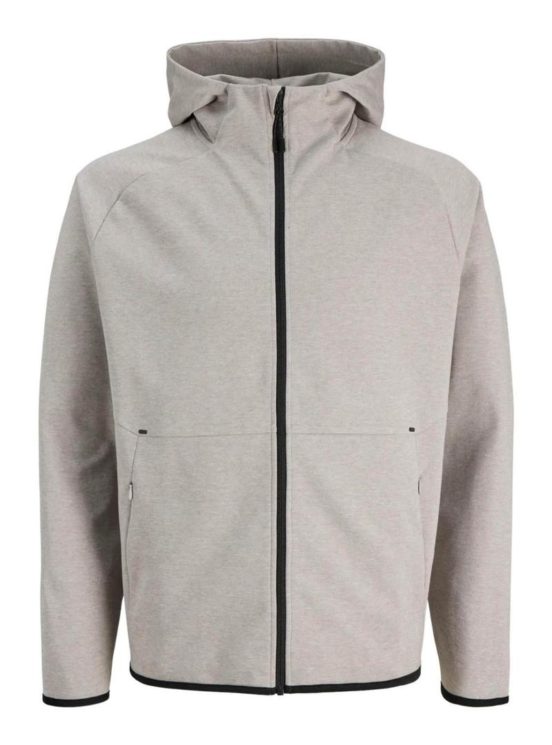 Moletom Jack and Jones. Modelo Base. Cor cinza. Fechamento com zíper. Gola alta. Detalhes em preto. Com capuz. Bolsos laterais. Ajuste regular.
