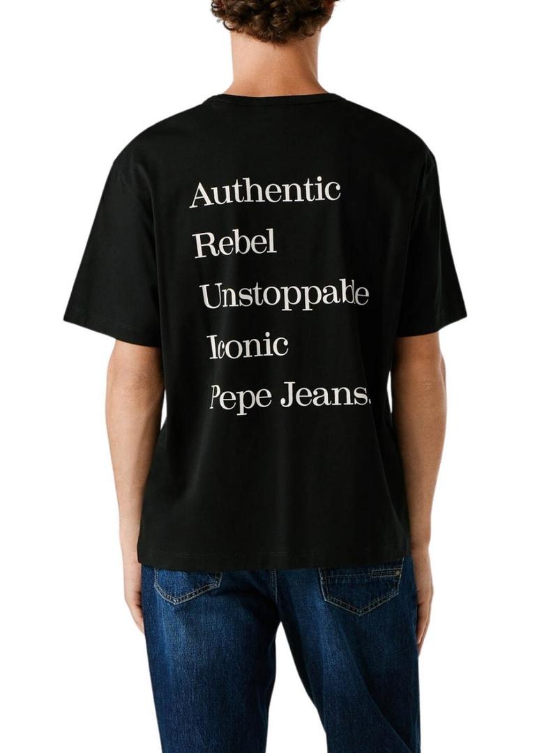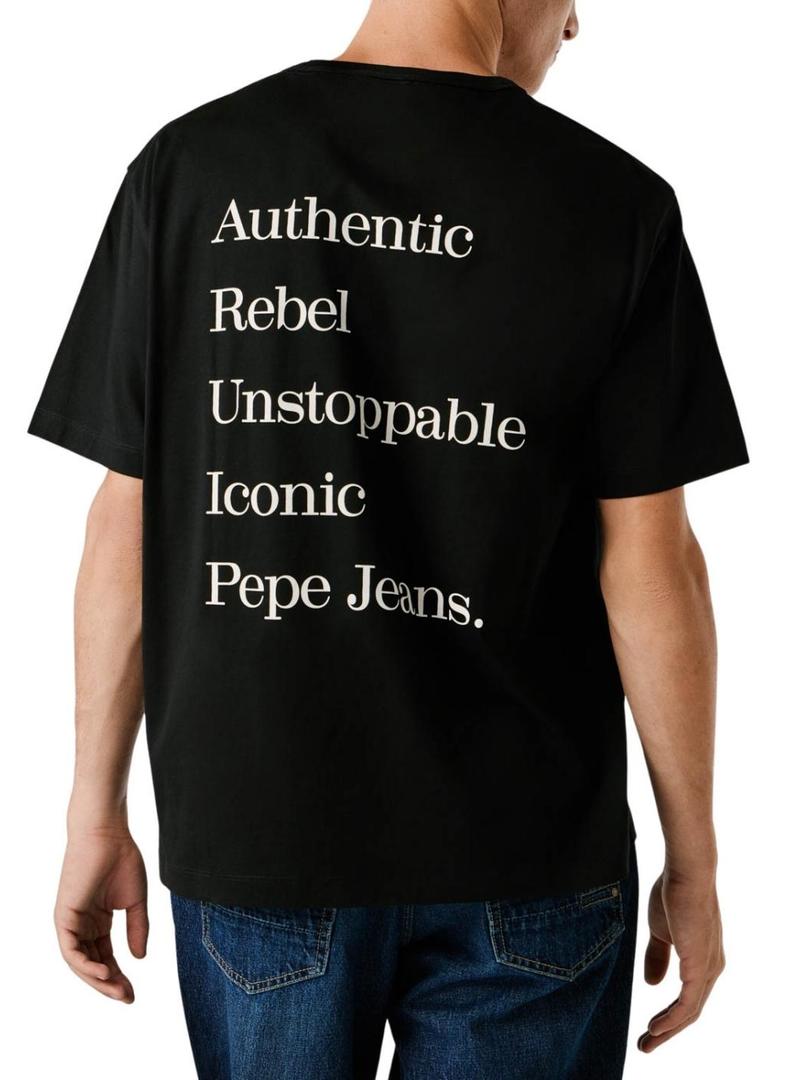 Camiseta Pepe Jeans. Modelo Garret. Cor preta. Ajuste folgado. Mangas curtas. Gola redonda. Iniciais PJL estampadas no peito. Mensagem estampada nas costas.