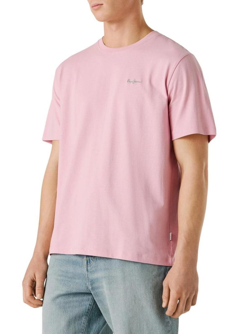 Camiseta Pepe Jeans. Modelo Contrast Connor. Cor rosa. Gola redonda. Manga curta. Ajuste folgado. Logo bordado no peito com linha em contraste.