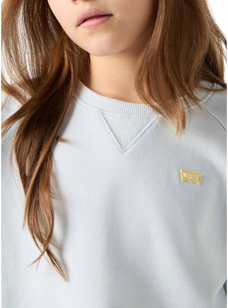 Moletom Levis. Modelo Meet And Greet. Cor azul. Gola redonda com inserção em V. Acabamentos canelados. Ajuste confortável. Manga raglã. Patch da marca bordado no pescoço em contraste.