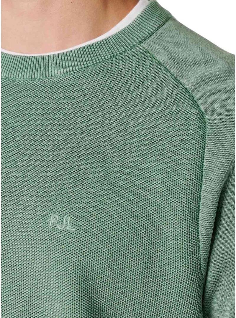 Camisola Pepe Jeans. Modelo Fleet. Cor verde. Gola redonda. Manga comprida. Extremidades caneladas. Ajuste regular. Iniciais PJL bordadas no peito. Etiqueta lateral da marca.