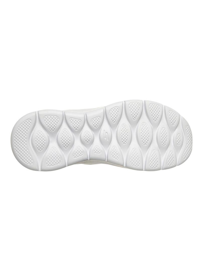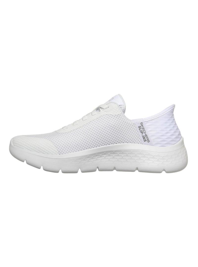 Tênis Skechers. Modelo GO WALK. Cor branca. Design vegano. Fechamento com cordões elásticos. Sistema Heel Pillow para um ajuste confortável. Parte superior em tecido sintético e malha. Palmilha Skechers Air-Cooled Memory Foam. Amortecimento leve ULTRA GO. Slip-ins, projetados para serem colocados sem usar as mãos.