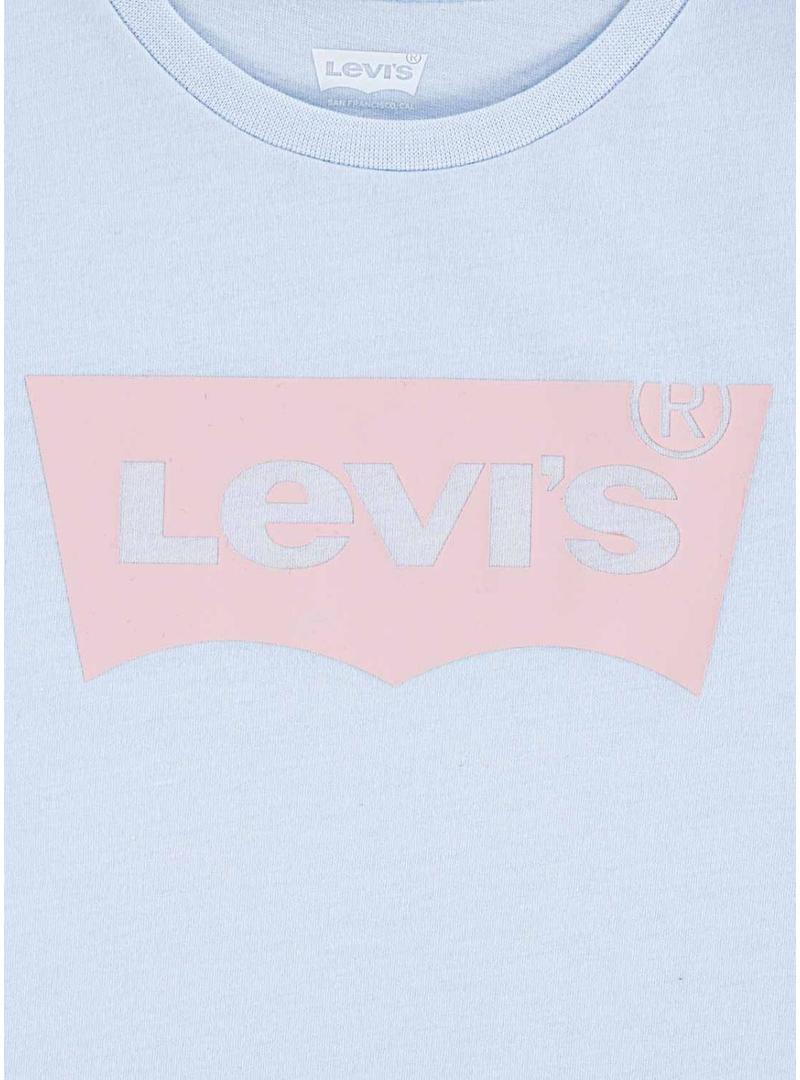 Camiseta Levis Batwing azul claro para meninas e meninos.