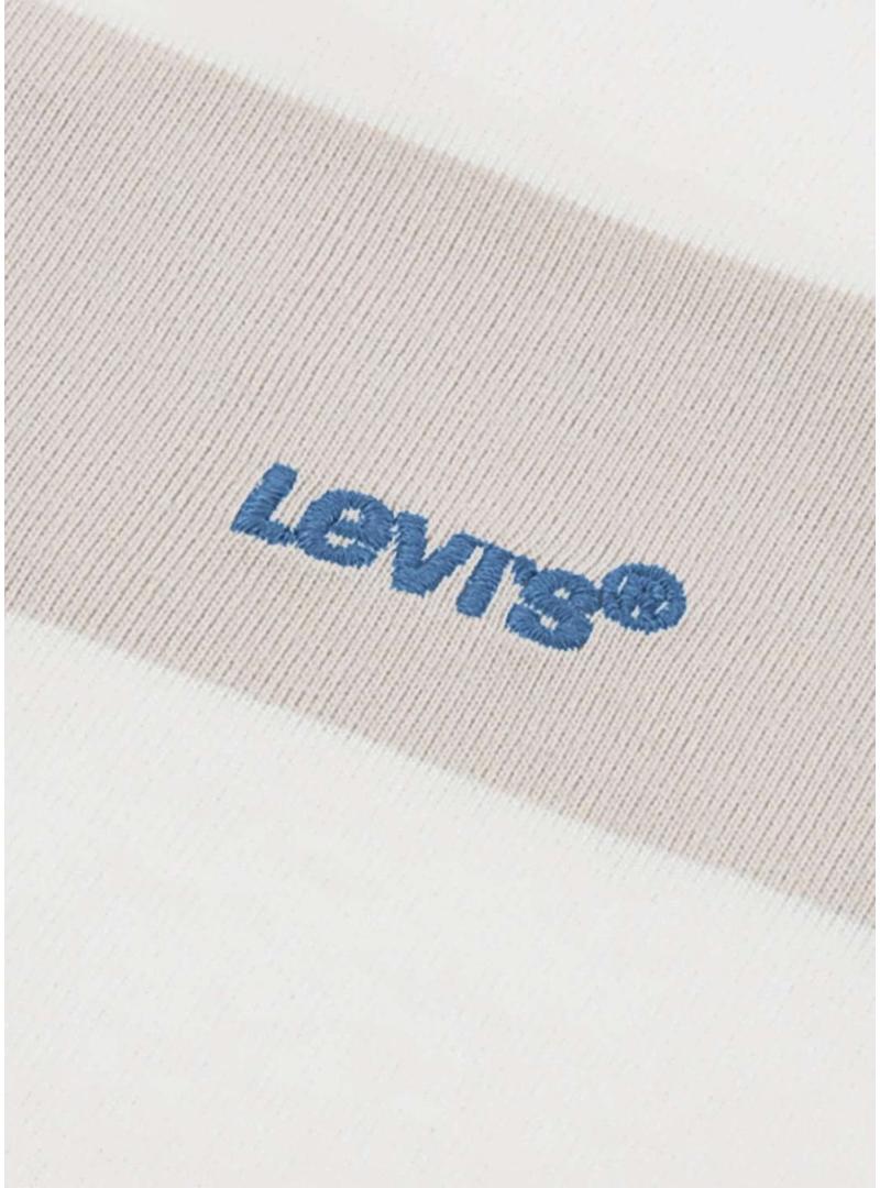 Camiseta Levi's. Modelo Big Stripe. Cor bege. Gola redonda canelada. Manga curta. Ajuste relaxado. Padrão de riscas. Logótipo bordado na parte da frente.