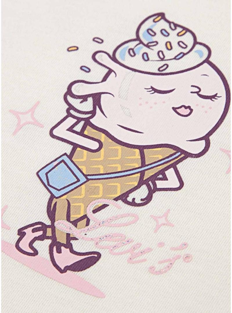 Camiseta Levis Just Chillling bege para menina.
