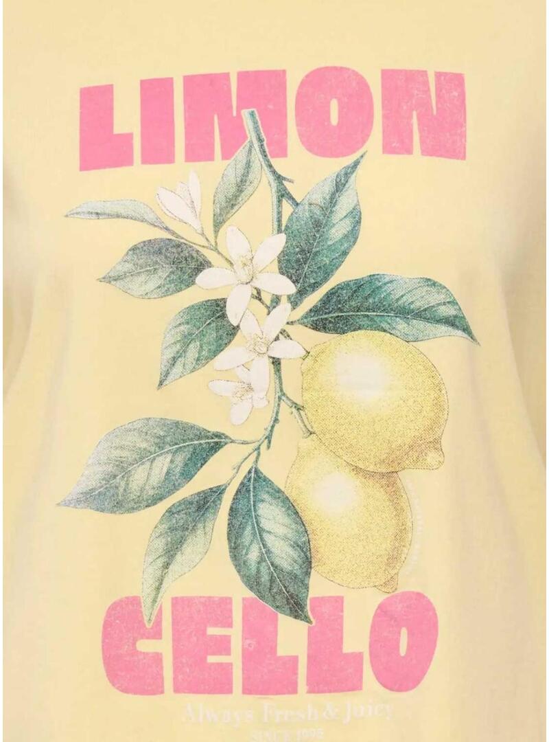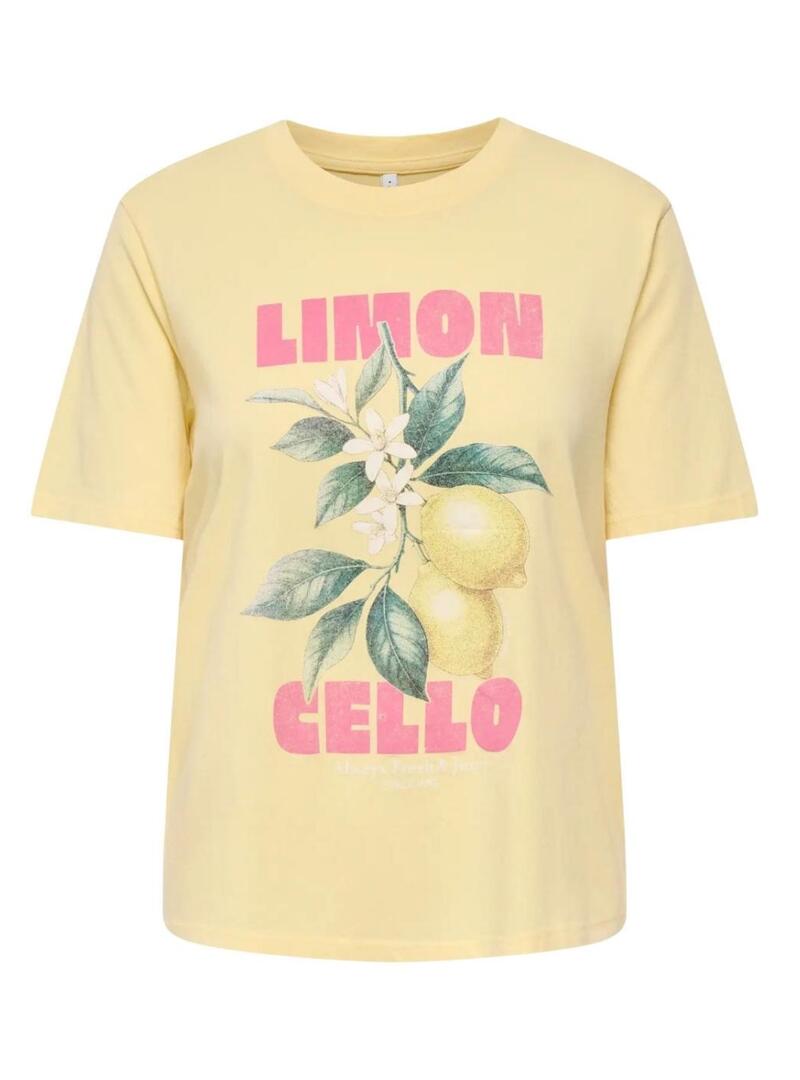 Camiseta Only. Modelo Lucy. Cor amarelo. Gola redonda. Manga curta. Corte regular. Gráfico no peito.