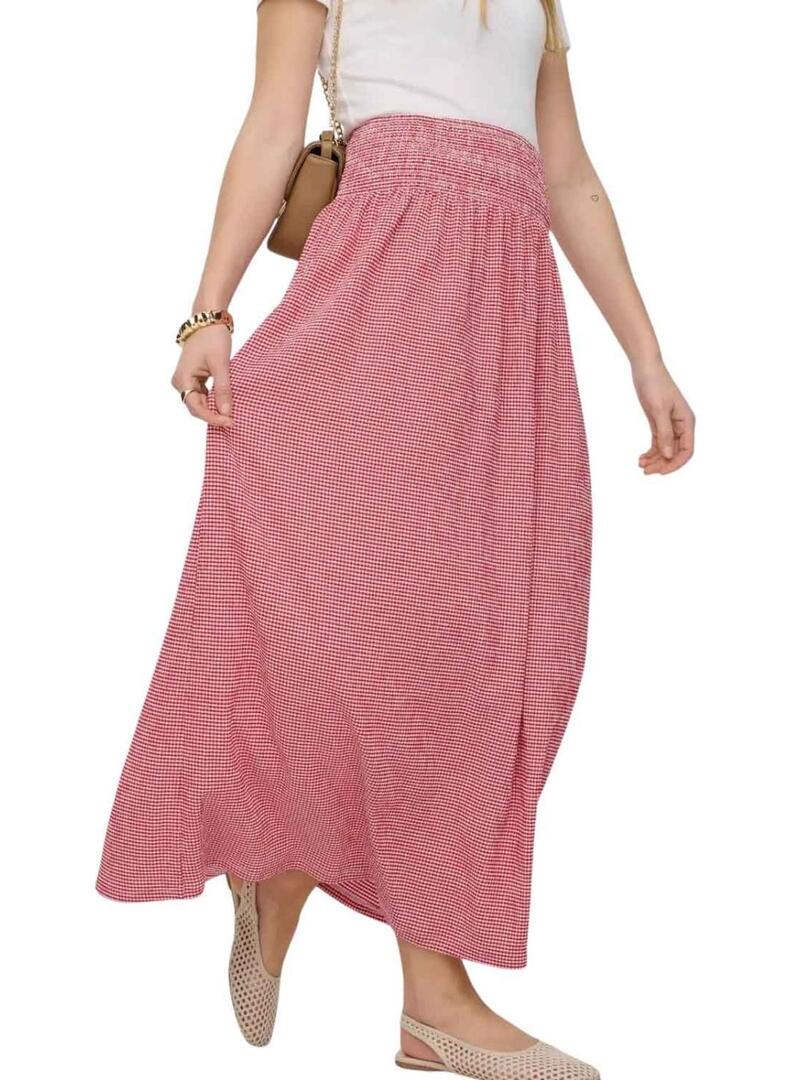 Saia Only. Modelo Celle. Cor vermelha. Estampa vichy. Comprimento longo. Cintura elástica franzida. Caimento fluido.