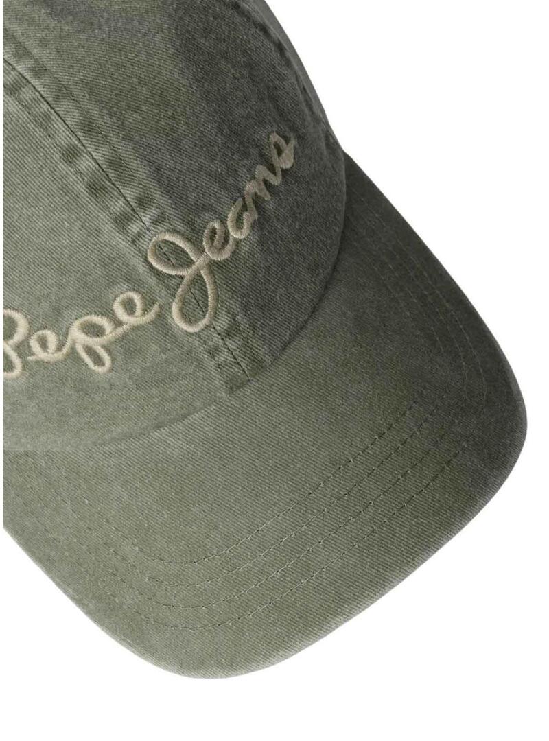 Boné Pepe Jeans. Cor verde. Viseira curva com detalhe de costuras. Ilhós de ventilação. Correia ajustável com fivela de metal na parte de trás. Logo bordado em contraste no painel frontal. Tecido lavado com efeito desgastado. Logo London bordado no painel traseiro.