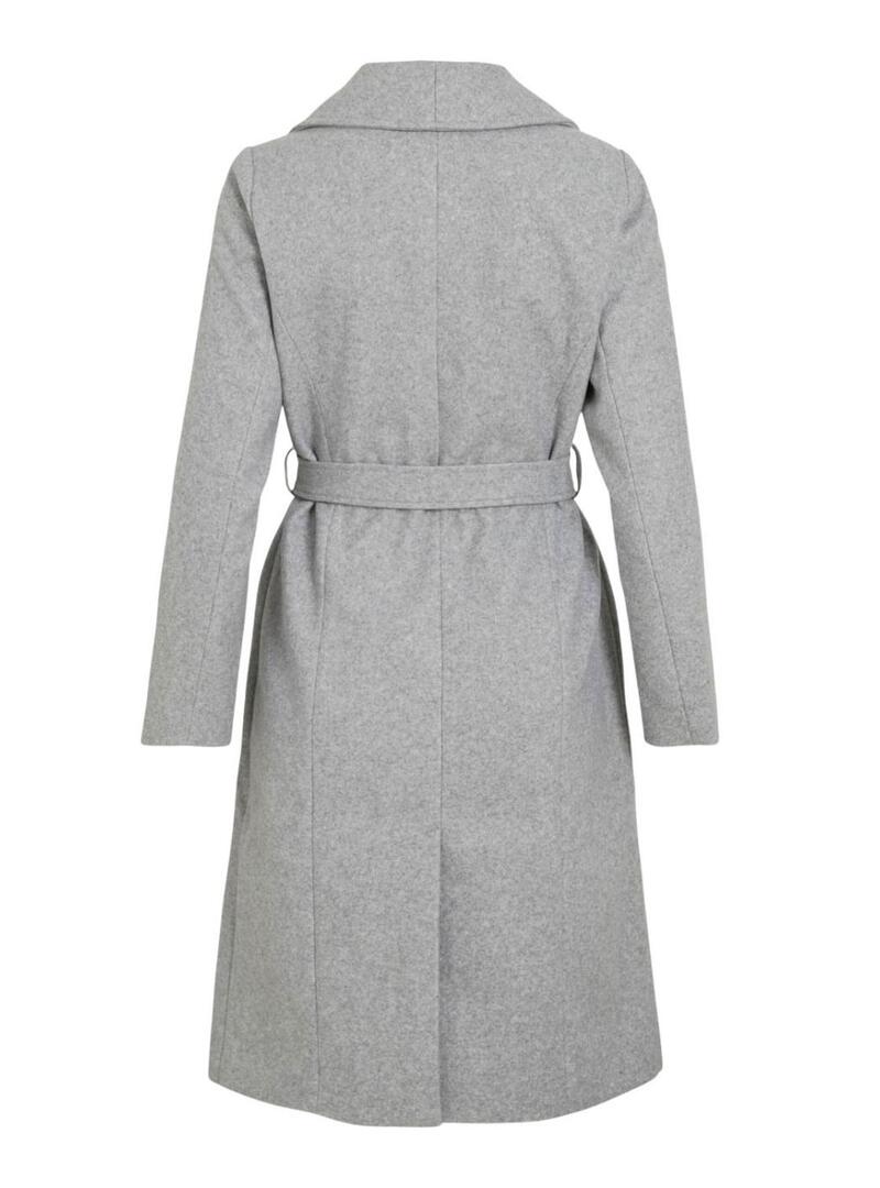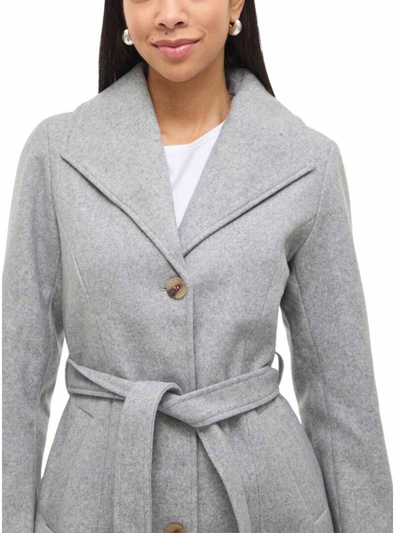 Casaco Vila. Modelo Claudine. Cor cinza. Corte clássico. Gola de lapela. Fechamento com botões. Laço na cintura com passadores. Forro interior. Corte regular. Bolsos laterais. Fenda traseira.