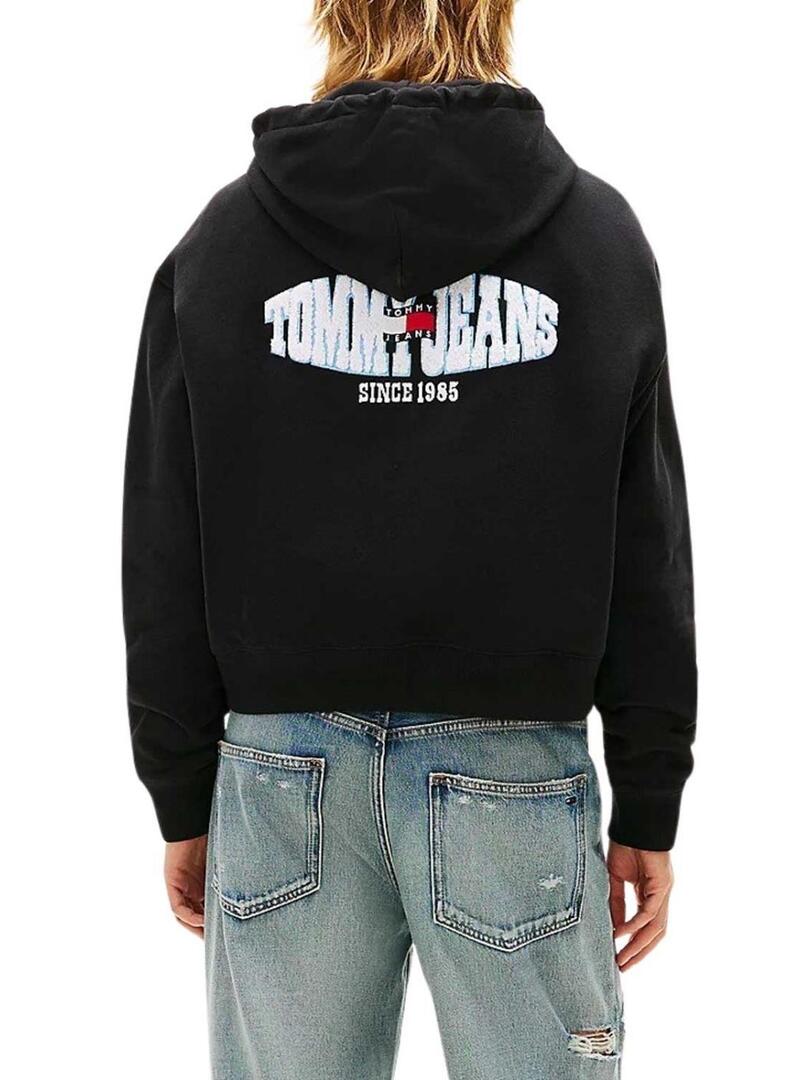 Moletom Tommy Jeans Wavy Flag preto para mulher.