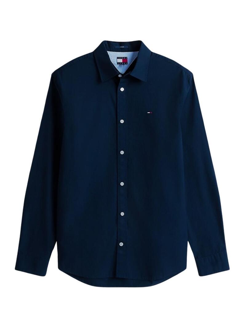 Camisa Tommy Jeans. Cor marinho. Tecido de Popelina. Gola inglesa. Manga comprida. Detalhes distintivos da Tommy Jeans. Logo da Tommy bordado no peito. Corte regular.