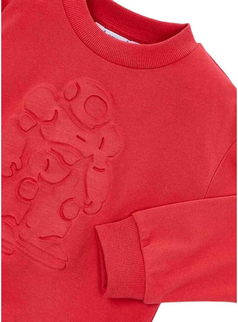 Moletom Mayoral. Gola redonda. Cor vermelha. Cintura e punhos elásticos. Estampa em relevo. Detalhes de costura. Costas lisas.