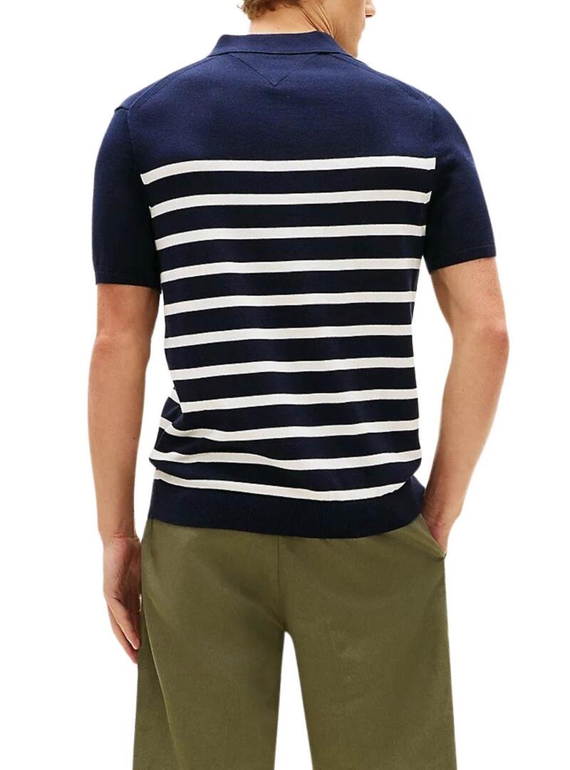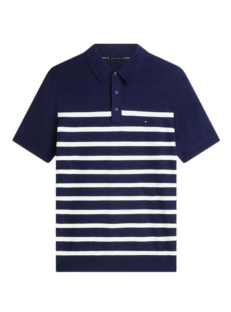 Camisa polo Tommy Hilfiger Essential listrada marinha para homem.