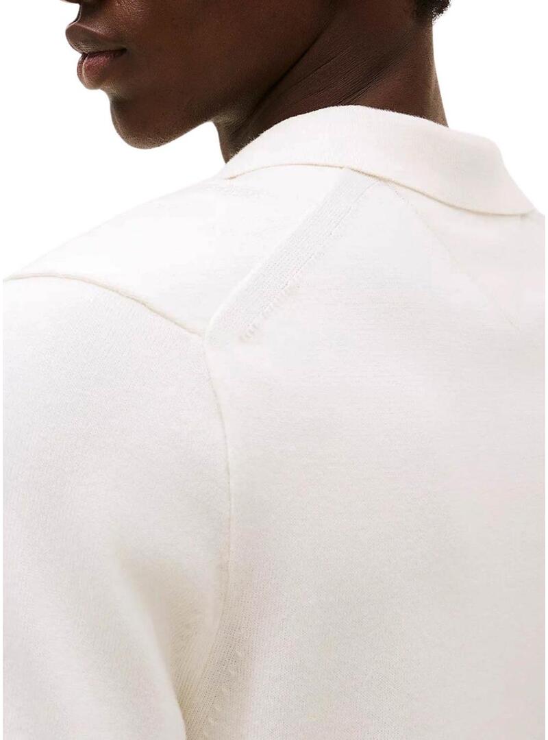 Camisa polo Tommy Hilfiger Monotype Placket branca para homem.