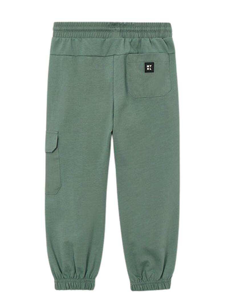 Calças Mayoral. Cor verde. Com bolsos laterais e na perna. Ajustável com cordão. Elástico na cintura e punho. Detalhes de costura.