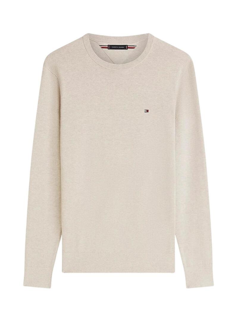 Camisola Tommy Hilfiger. Cor bege. Gola redonda. Manga comprida. Corte regular. Logotipo bordado da Tommy Hilfiger no peito. Fita distintiva no interior da gola. Acabamentos elásticos.