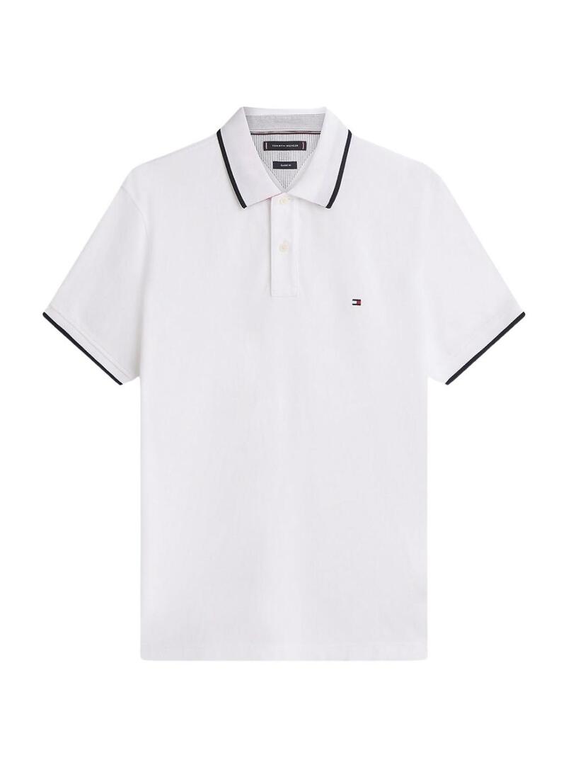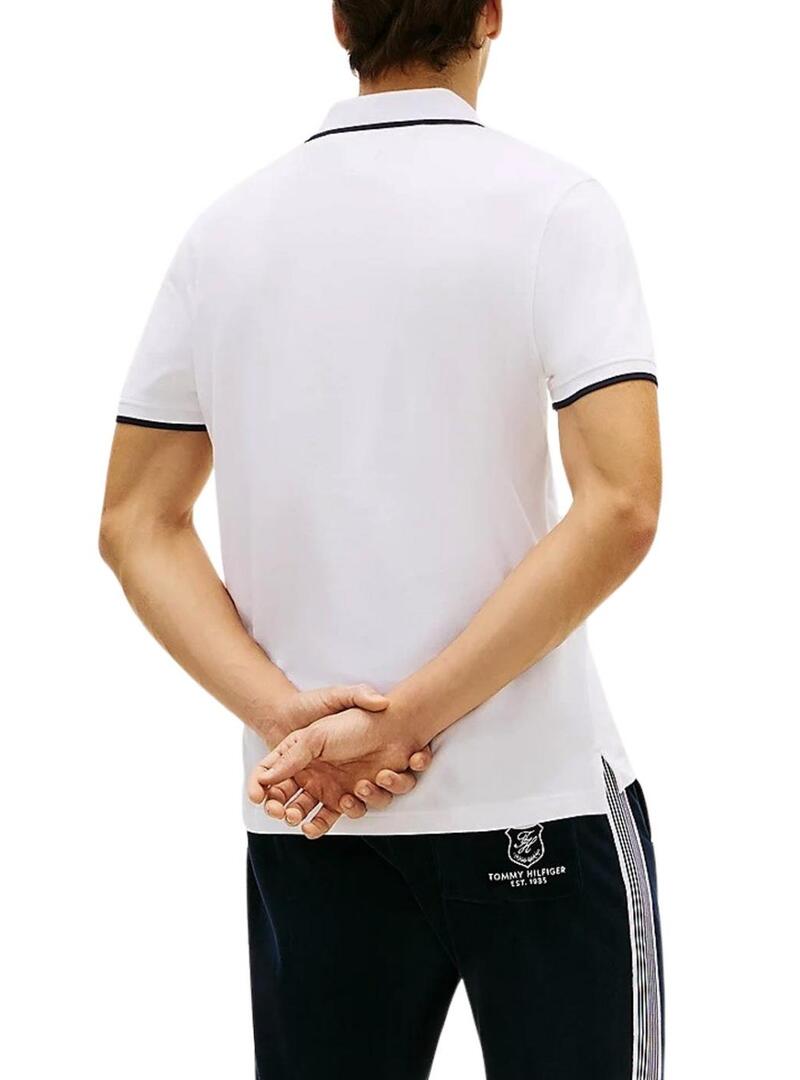 Camisa polo Tommy Hilfiger Piqué branca com listras em contraste para homem.