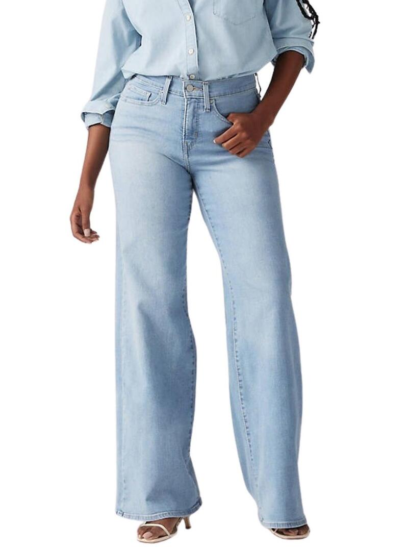 Calça jeans Levis 318 Shaping Wide Leg azul para mulher.