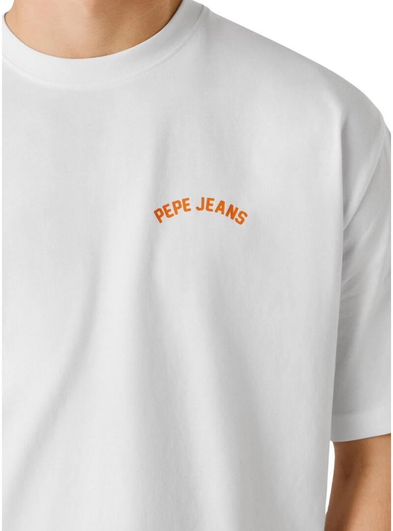 Camiseta Pepe Jeans. Modelo Gideon. Cor branca. Gola redonda canelada. Manga curta. Estampa distintiva na parte da frente e de trás. Corte regular.