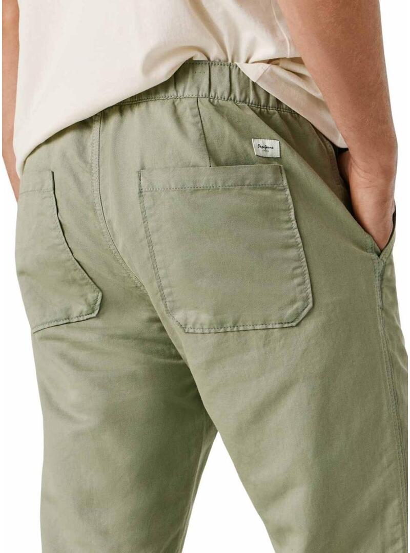 Calça chino Pepe Jeans. Modelo Pull On Comfort. Cor verde. Feito em um tecido suave de linho. Cintura ajustável com cordão. Bolsos traseiros com remendo. Corte reto. Estilo relaxado. Bolsos laterais.