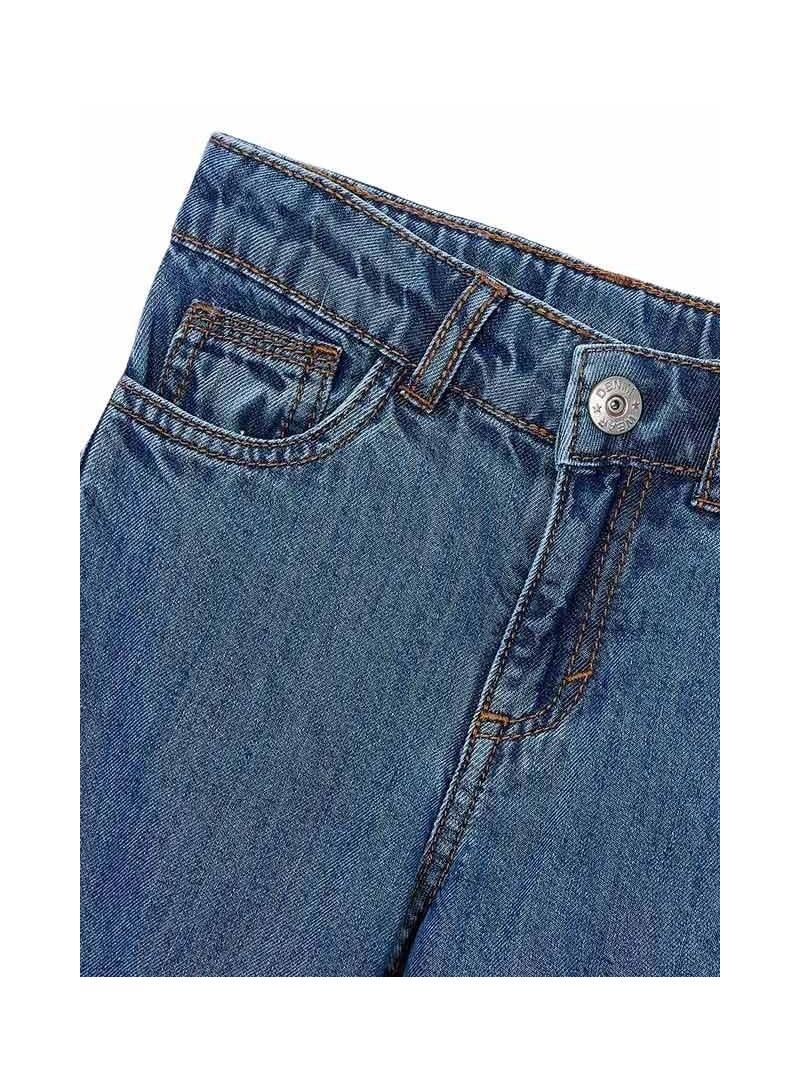 Calça jeans Mayoral. Cor azul. Corte largo. Cintura com botão. Bolsos laterais. Etiqueta costurada na cintura com o logo da marca.