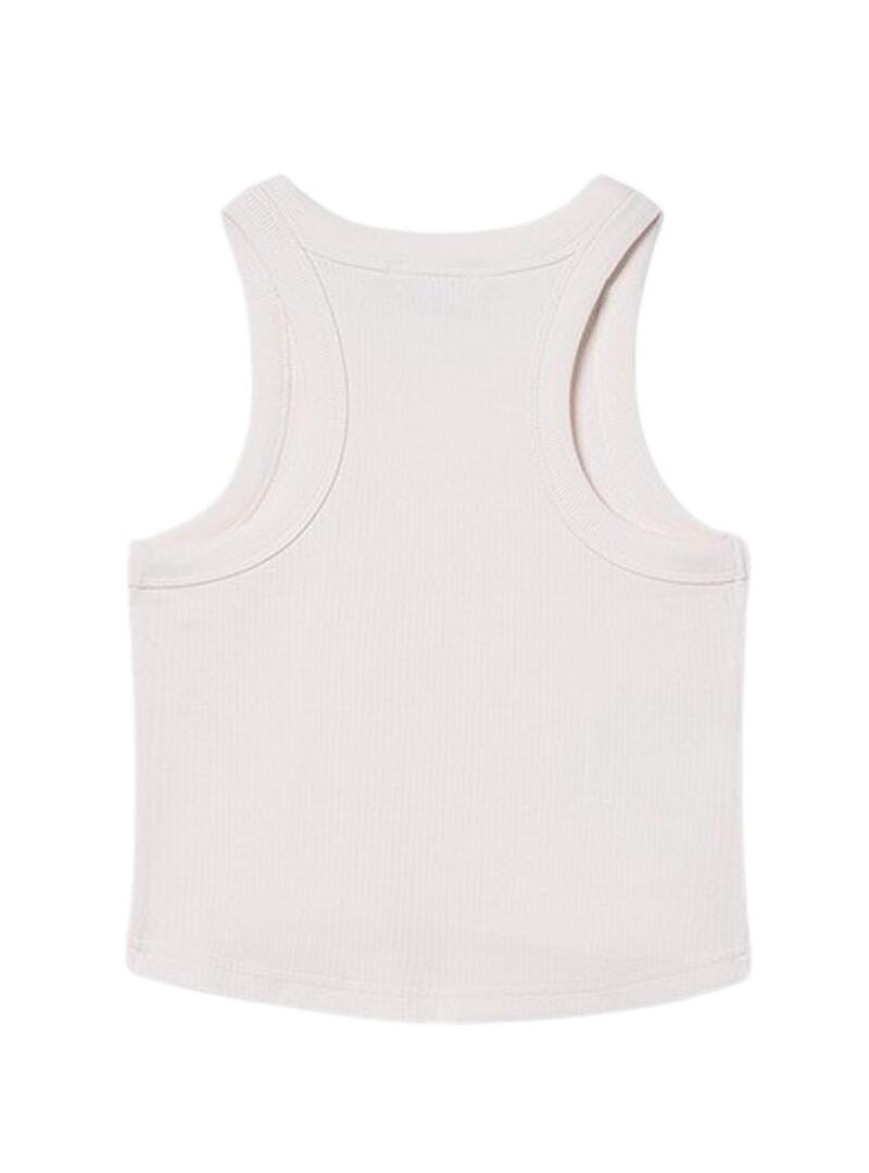 Camiseta Mayoral. Cor branca. Gola redonda. Com detalhes em canelado. Tachas no pescoço. Manga curta.