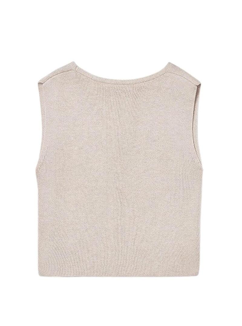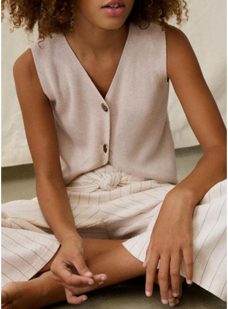 Colete Mayoral. Malha fina. Cor bege. Decote em V. Sem mangas. Fecho frontal com botões. Corte reto. Estilo básico. Perfeito para combinar com calças ou saias em looks confortáveis e naturais.