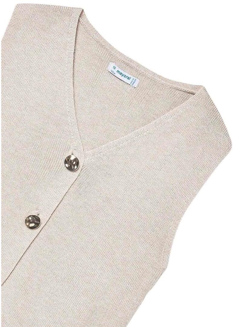 Top Mayoral de tricô bege com botões para menina.