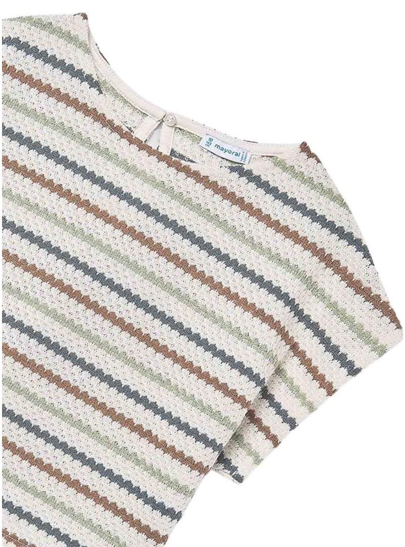 Camiseta Mayoral de malha às riscas multicoloridas para menina
