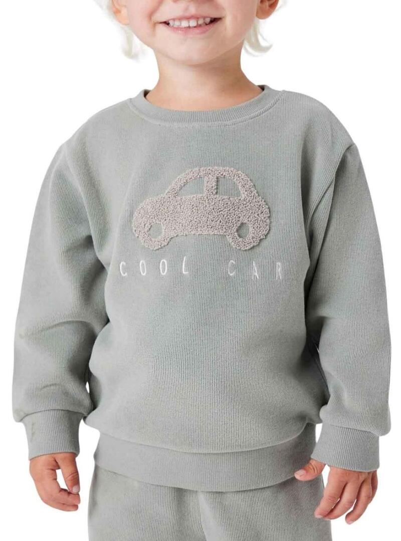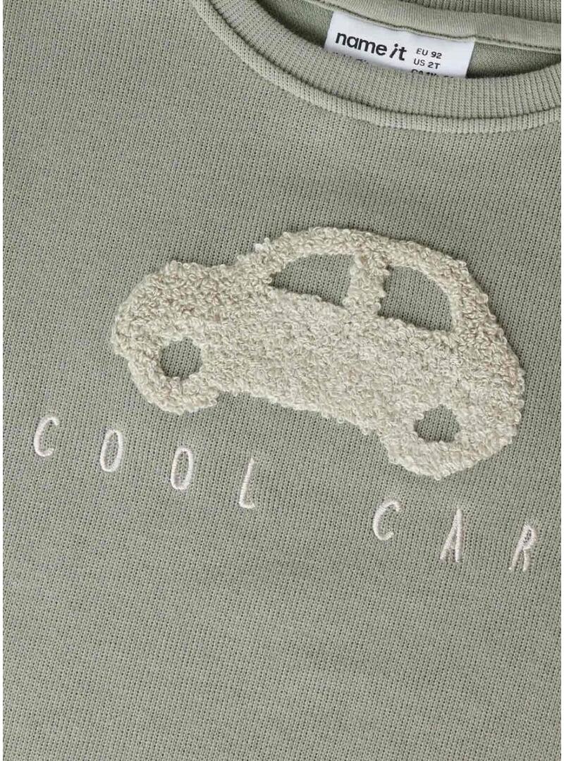 Moletom Name It verde acinzentado com carro para menino.