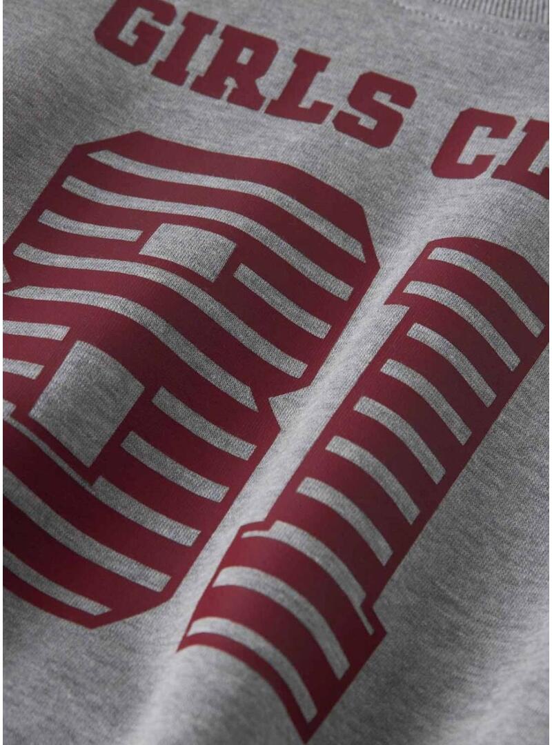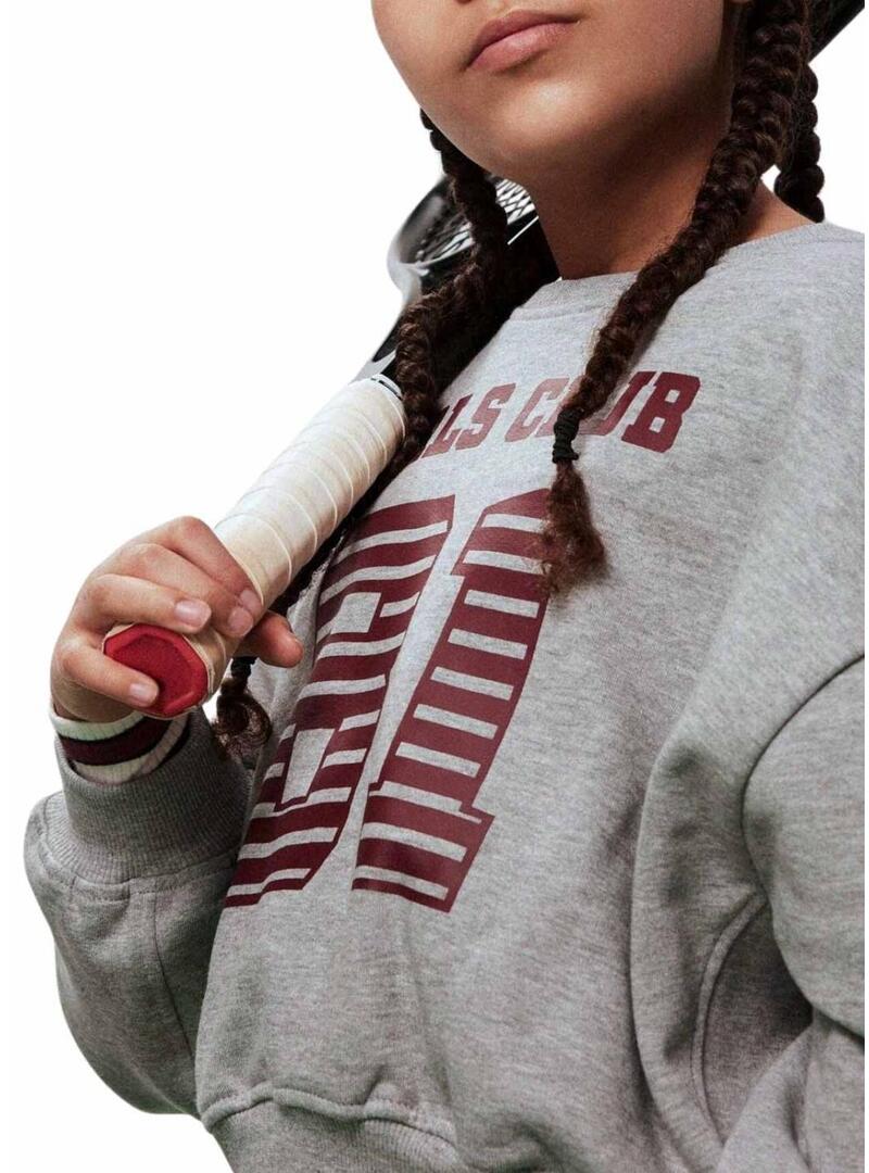 Moletom Name It. Cor cinza. Gola redonda. Manga comprida. Texto Girls Club 81 na frente. Barra e punhos acabados em malha canelada. Corte folgado. Estilo casual. Uma peça confortável e fácil de combinar para completar looks diários com um toque esportivo.