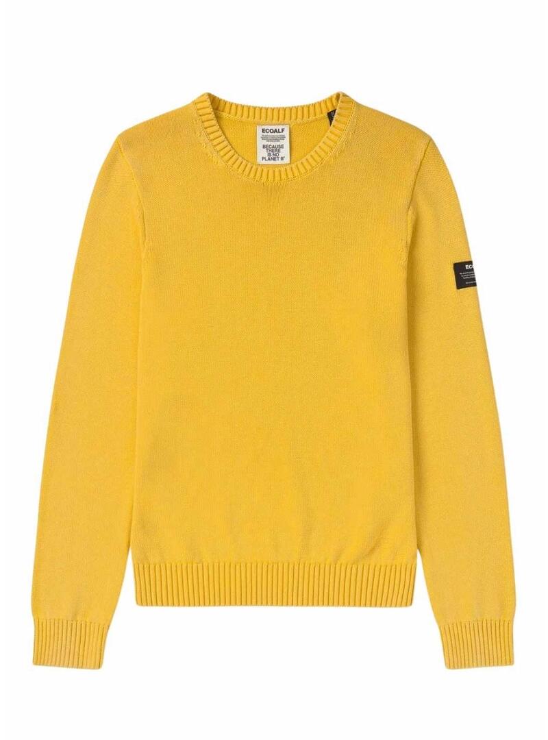 Camisola Ecoalf. Modelo Tail. Cor amarelo. Manga comprida. Feito com algodão reciclado. Gola redonda. Formato regular. Acabamentos canelados. Lavagem de pedra. Etiqueta da marca costurada em uma manga. O modelo veste o tamanho L.