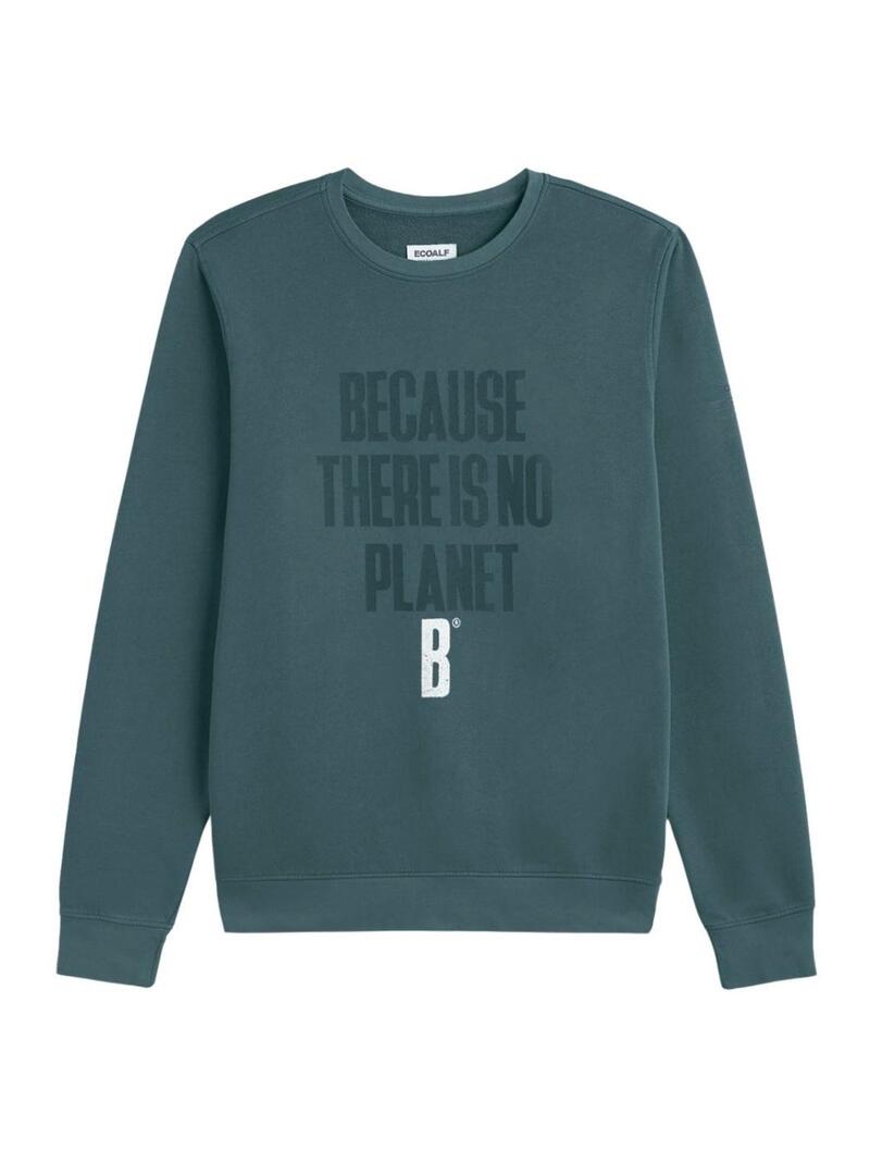 Moletom Ecoalf. Modelo Bardera. Cor verde. Gola redonda. Manga comprida. Feito com algodão reciclado. Corte regular. Estampa Because There is no planet b na parte da frente. Acabamentos canelados. Tingido e lavado na peça. O modelo veste o tamanho L.