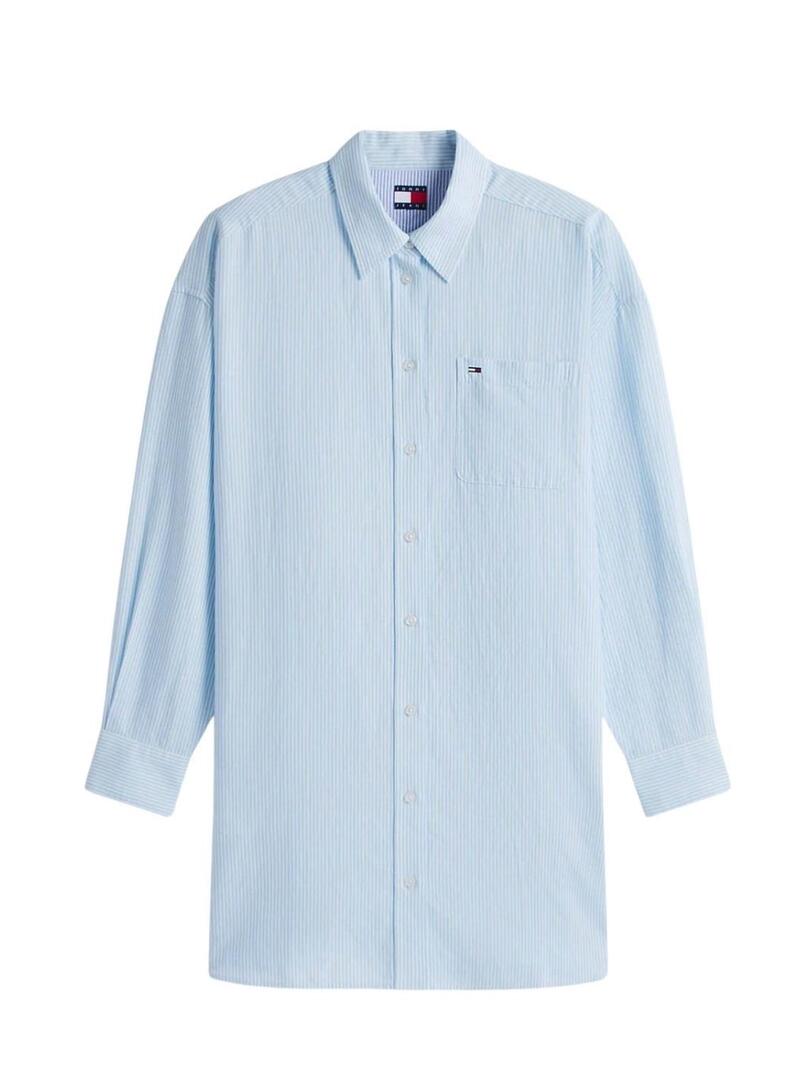 Vestido camiseiro Tommy Jeans oversize de linho azul para mulher.