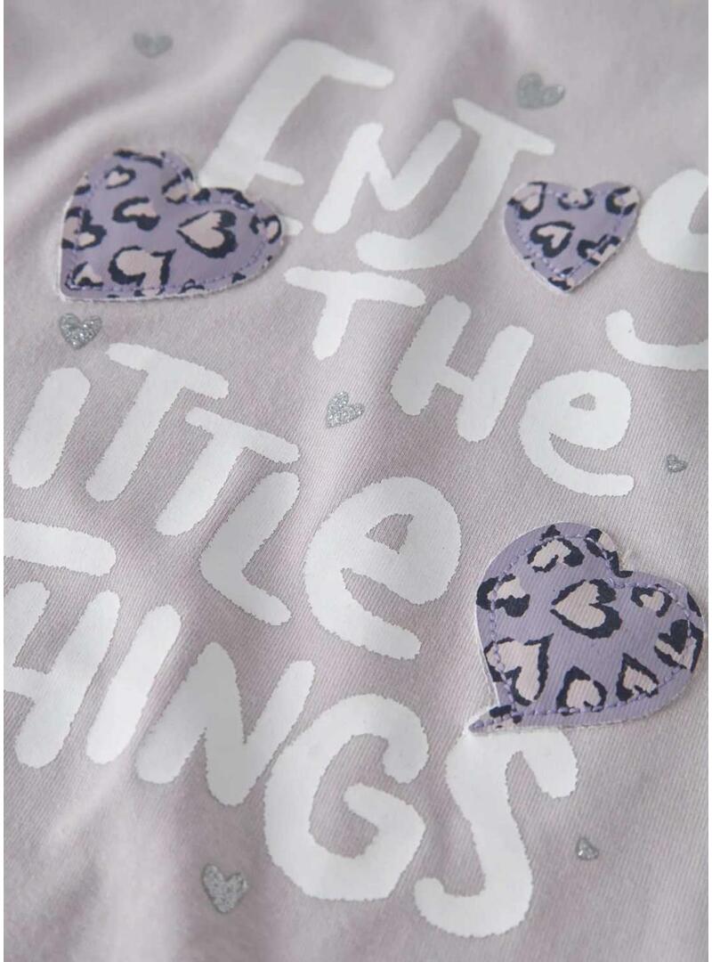 Camiseta Name It. Cor rosa claro. Gola redonda. Manga curta. Estampa frontal com mensagem e corações decorativos. Corte reto. Estilo casual. Uma camiseta confortável e doce, ideal para dar um toque alegre e delicado aos looks do dia a dia.