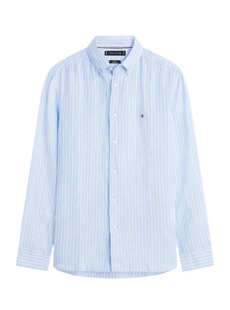Camisa de linho Tommy Hilfiger Listras de Bengal azuis para homem.