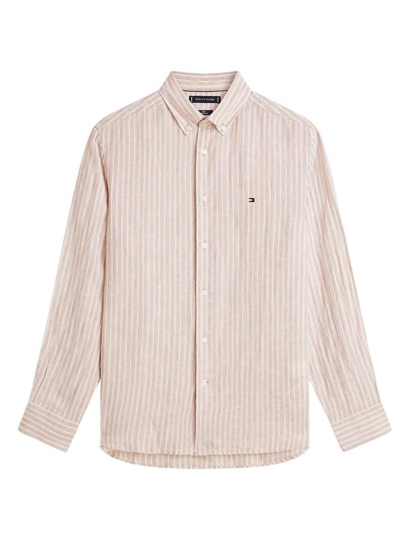 Camisa de linho Tommy Hilfiger listrada em linho Bengal em tons de bege para homem.
